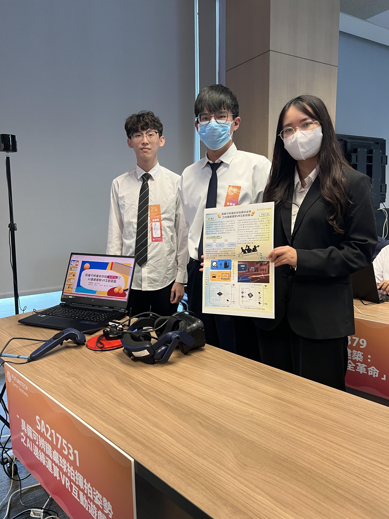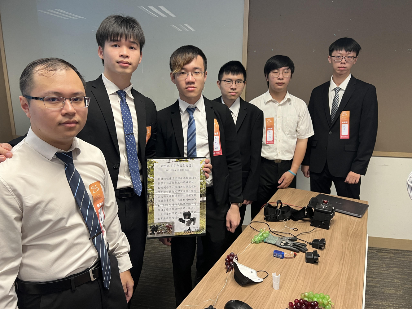 9.得獎作品名稱:葡萄採收器、具備可辨識桌球拍揮拍姿勢之 AI 邊緣運算 VR 互動遊戲