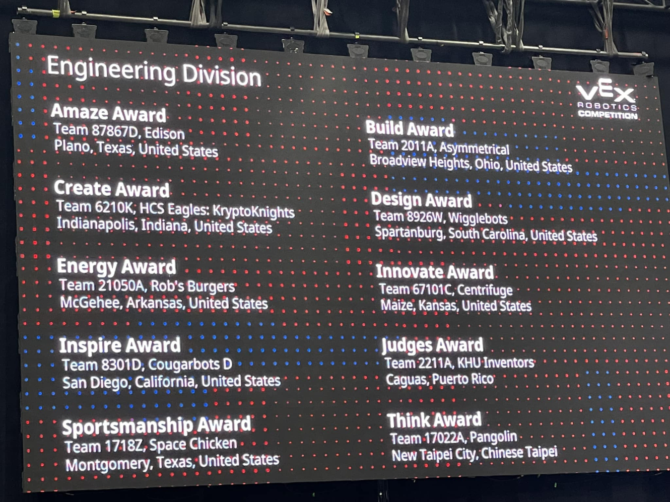 四、高中組 17022A 團隊獲得VEX世界賽巧思獎 Think Award。